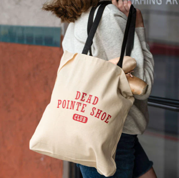 You've danced your heart out, and your pointe shoes have paid the price—now it's time to carry on in style with the Dead Pointe Shoe Club Tote! Perfect for ballerinas who know the struggle of "dying" shoes all too well, this durable canvas tote is ready to haul all your dance essentials with ease.